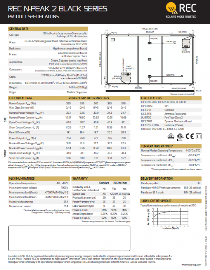REC370NP2 - 370W NPEAK2 MONO WHT/BLK